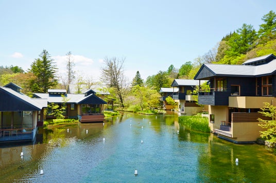 谷の集落に滞在する。離れの客室は水辺を囲み、部屋のテラスからは季節のうつろいが感じられます。「軽井沢野鳥の森」に面した豊かな自然環境にて、休息の時間を満喫できる滞在型の宿泊施設です。