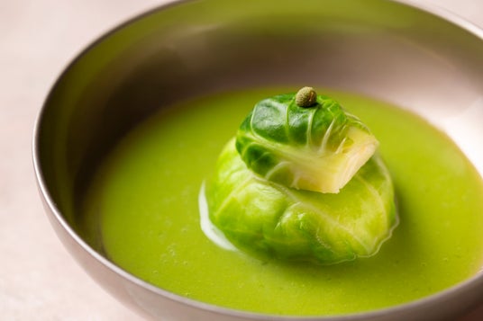 青豌豆(あおえんどう)を滑らかな舌触りに仕上げた、翡翠色の摺り流しが目にも鮮やかな一品です。新キャベツのふくよかな甘みや芽キャベツのほのかな苦み、実山椒のピリッとしたアクセントなど、器の中に広がる春の彩りと滋味深い味わいが、五感を優しく刺激します。