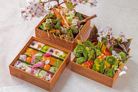 含まれるもの:春花の三段重、椀物、向付、甘味、ペアリング