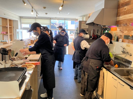 お揃いのユニフォームを着用し一層集中して仕事に取り組むカフェメンバーたち