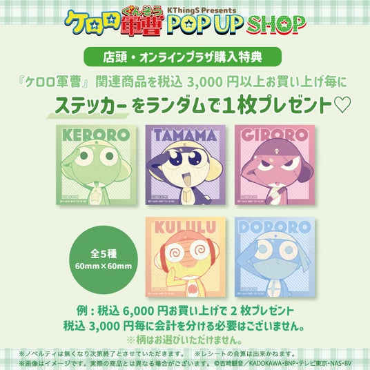 株式会社KThingSは『ケロロ軍曹 POP UP SHOP』を東京駅一番街 東京キャラクターストリート G階段下ワゴンで開催します。