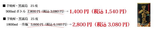 ■ 焼酎ボトル半額ラインアップ