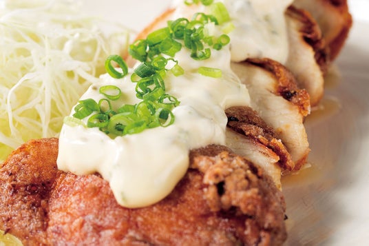 宮崎県延岡市で1965年頃に誕生した「チキン南蛮」は、衣をつけて揚げた鶏肉を南蛮酢にサッとくぐらせ、タルタルソースで味付けした揚げ物です。お酢の香りがチキンの風味を更に引き立てます。