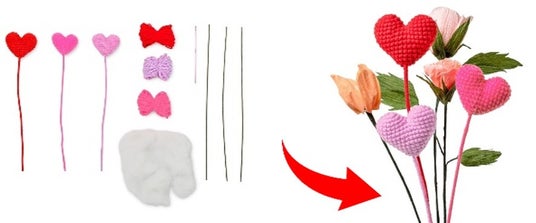 花束と一緒に添えるハートを心を込めて編んで。