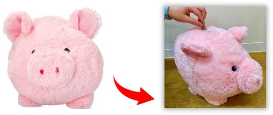 ブタちゃんのぬいぐるみ型貯金箱!35x28cmのビッグサイズ!
