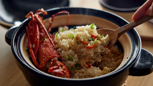 伊勢海老、あわび、それぞれが入った、具沢山で贅沢な炊き込みご飯の素。具材の旨みを引き出せる出汁と2合のお米を一緒に炊くだけで、本格的な味わいがたのしめます。