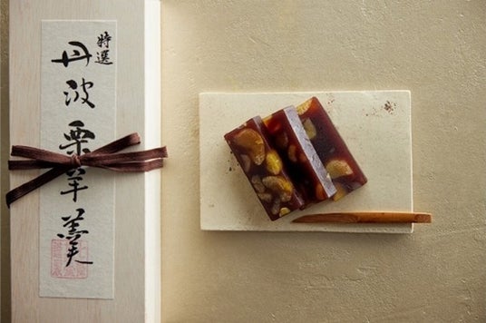 今秋に採れた「丹波栗」をゆっくりと蜜漬けし、国産小豆の羊羹に合わせました。 どこを切ってもゴロゴロと出てくるほどに、丹波栗をたっぷりと使用しています。