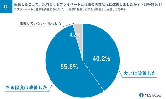 勤務先変更でプライベートと仕事の両立状況が改善した医師は95.8%