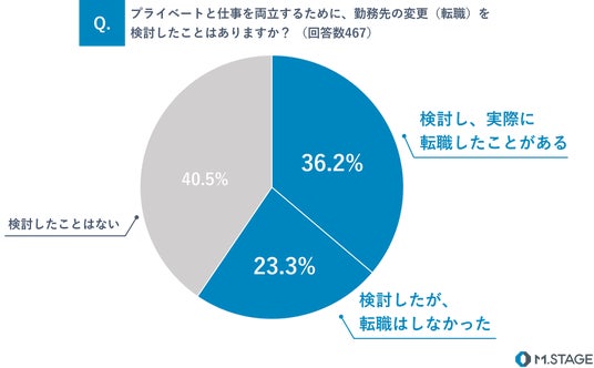 ・59.5%がプライベートと仕事の両立のために勤務先の変更を検討