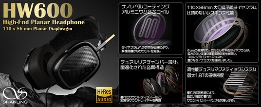 HW600は、35年以上の歴史を持つSHANLINGが制作した、初のフルサイズヘッドフォンです。製品の目標である優れた駆動性を達成するために、約10年の歳月をかけて研究と開発が進められました。ヘッドバンド部には、薄く柔軟性に優れたラムスキンを採用し、アジャスト部はスムーズかつ、滑らかな調整が可能になっており、パーソナライズされたポジションへのセッティングが可能です。ユニットの振動板には、110×86mmの8μmポリエステル平面ダイヤフラムを採用。わずか8μmの超薄型で、広々とした平面ダイヤフラムは、歪みのない正確な振動変換効率を実現し、低域から高域まで伸びやかで優れたフルレンジパフォーマンスと、豊かなダイナミクスを確保しました。