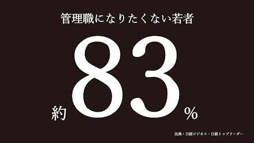 この問題は中小企業だけの問題ではありません。同じく日経ビジネスの調査では、管理職になりたくないと考えている若手社員が約83%となっており、「後継者難」という観点では企業トップも各組織の長も同様の状況と言えます。