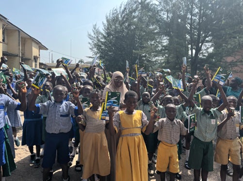 GEISHAノートを持ち喜ぶナイジェリアの生徒たち