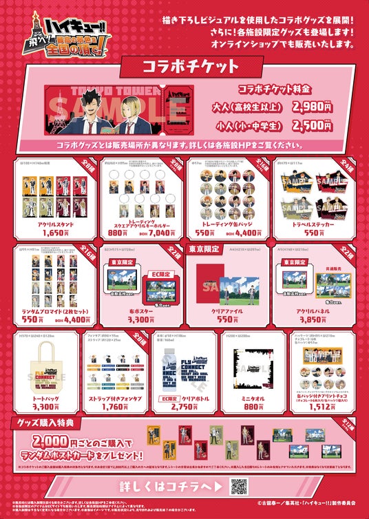 東京タワーフットタウン2階「Co・Lab-TOKYO-」では、【ハイキュー!!飛べ!最高の景色を全国の頂で!】の為に描き下ろされた新規ビジュアルを使用したコラボグッズが販売決定!!(全13アイテム61種類)