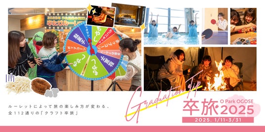 株式会社温泉道道(埼玉県比企郡ときがわ町、代表取締役 山崎寿樹)が運営する複合型リゾート施設「BIO-RESORT HOTEL&SPA O Park OGOSE」(埼玉県入間郡越生町、以下オーパークおごせ)は、学生の卒業旅行シーズンに合わせ、2025年1月11日から2025年3月31日までの期間限定で、思い出づくりを応援する「卒たびプラン」の販売を開始いたします。