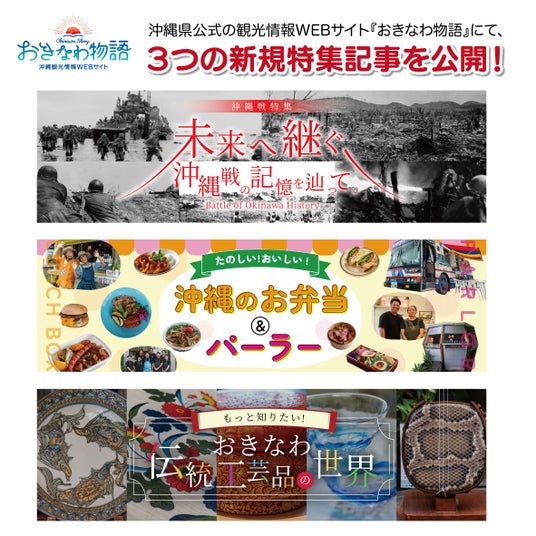 沖縄県公式観光情報WEBサイト『おきなわ物語』にて「未来へ継ぐ沖縄戦の記憶を辿って」「たのしい!おいしい!沖縄のお弁当&パーラー」「もっと知りたい!おきなわ伝統工芸品の世界」3つの新規特集記事を公開!