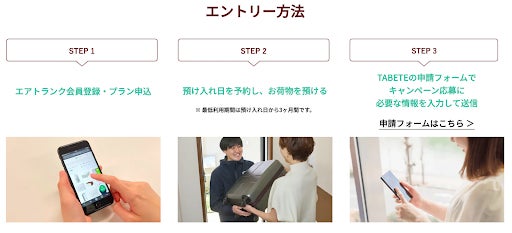 株式会社コークッキング(以下コークッキング)の展開する国内最大級の食品ロス削減サービス「TABETE(タベテ)」が、株式会社エアトランク(本社:東京都千代田区、代表取締役社長:福岡 英成)が運営する、宅配型トランクルーム「エアトランク」と連携します。エアトランクに初めて申し込みし、荷物預け入れを完了いただいた方全員に対し、TABETE上で使用できる4,000円分のTABETEポイントをプレゼントするキャンペーンを12月1日(日)より開始いたします。