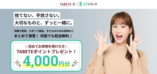 宅配型トランクルーム「エアトランク」と「TABETE」が連携。いますぐ使わない物を廃棄せず、収納で解決するためのキャンペーンを12月1(日)から開始。