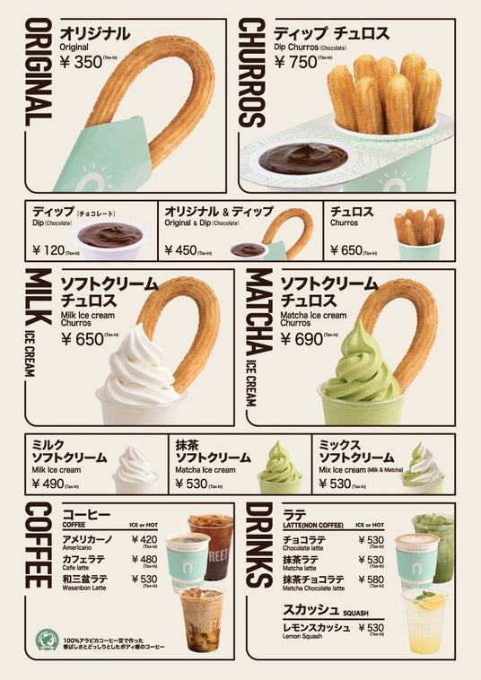 ※日本限定。日本限定のフレーバーである「ソフトクリームチュロス抹茶」と「和三盆ラテ」が、和のテイストを加えた新しい味わいとして登場します。