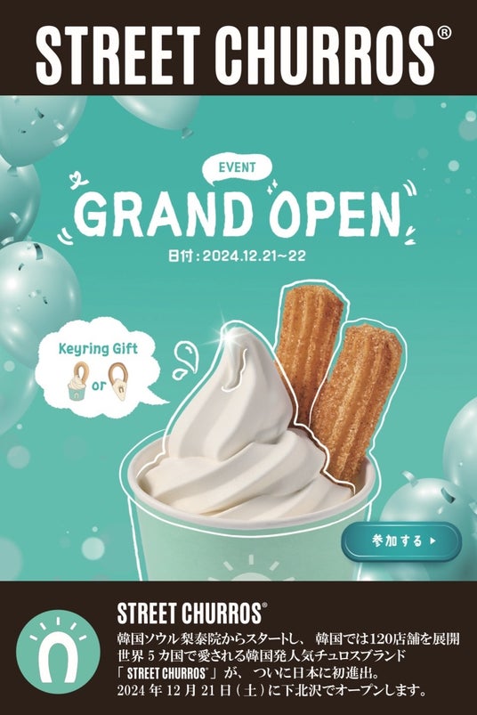 韓国で120店舗を展開するチュロスブランド『STREET CHURROS』が日本初上陸!2024年12月21日(土)10時より、下北沢店がグランドオープン!