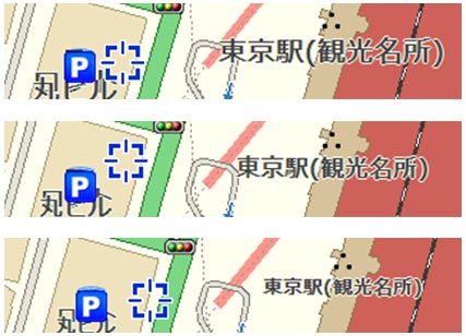 地図の拡大/縮小、3D表示や文字サイズの3段階切り替えが可能。