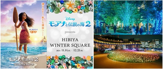 “魔法のような瞬間”をコンセプトに、昨年約420万人の方が来街した冬の日比谷を彩るイベントが今年も開催されます。日比谷ステップ広場には、ディズニー・アニメーション映画『モアナと伝説の海2』とコラボレーションしたツリーが登場し、パークビューガーデンではスターが光り輝くステージをイメージした虹色のカーペットが一面に広がります。日比谷仲通りのイルミネーションでは、普段はなかなか目にすることのできない神秘的な空の自然現象を色彩で表現しています。期間中、色彩が変化していきますので、ぜひ何度も訪れてご堪能ください。