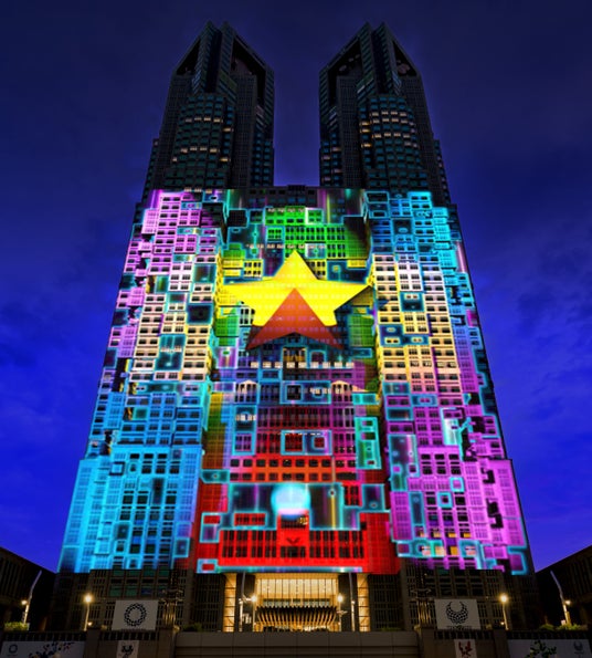 東京都では、夜間の観光振興の活性化に向けて、東京の夜を彩る新たな観光資源を作るため、代表的なランドマークである都庁第一本庁舎をキャンバスに光と音で多彩なアートを表現するプロジェクションマッピングを通年で上映しており、これまでに約45万人の方にご来場いただいております。