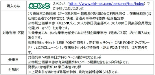 ※購入後に変更や払戻、「えきねっと」とJRE POINTの連携解除等を行った場合、キャンペーンの対象とならない場合があります。