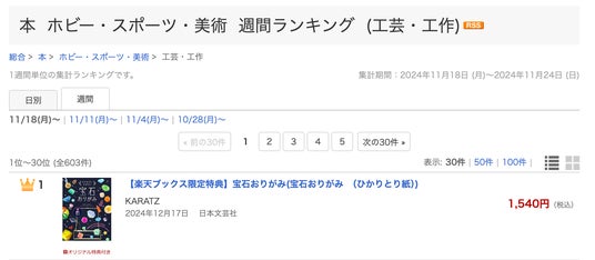 ★楽天ブックス週間ランキング(工芸・工作部門)で1位を獲得しました!(2024.11.18~12.1)