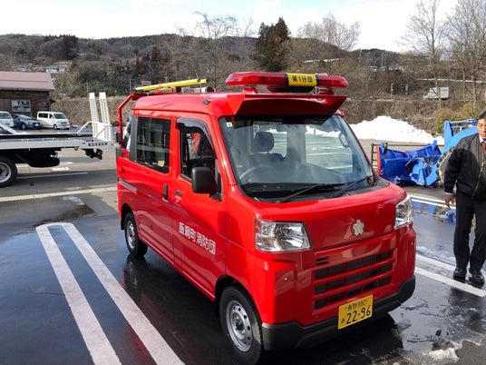 一般社団法人日本損害保険協会では、地域の防災力を高めることを目的として、毎年全国の市町村に対し消防資機材の寄贈を行っており、本年は飯綱町が小型動力ポンプ付軽消防自動車(デッキバンタイプ)の寄贈を受けることとなりました。