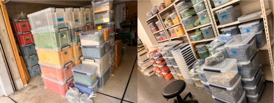 buoy工房の倉庫の様子(日本各地から送付された海洋プラ)