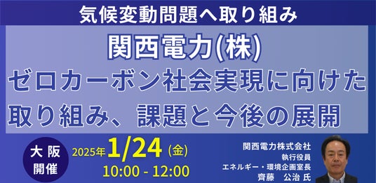 【JPIセミナー】関西電力(株)「ゼロカーボン社会実現に向けた取り組み、課題と今後の展開」1月24日(金)<大阪開催>