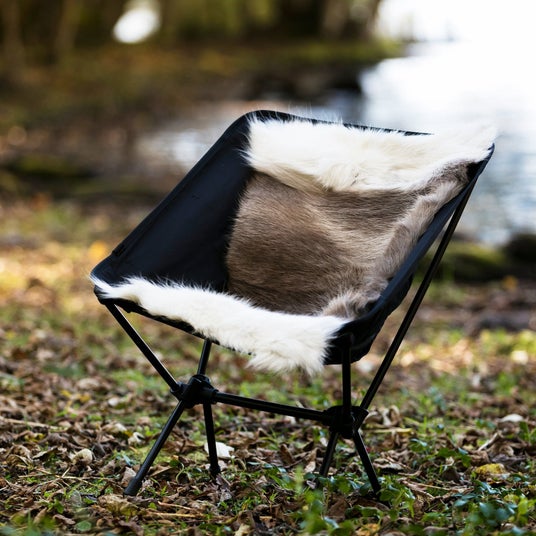 長さ約130cmほどのファーは、アウトドアではキャンプの際に地面やコットに敷いてふわふわのスリーピングマットとして活用したり、座って使用する際も十分な大きさがあり、大人2人が余裕を持って座ることが可能。