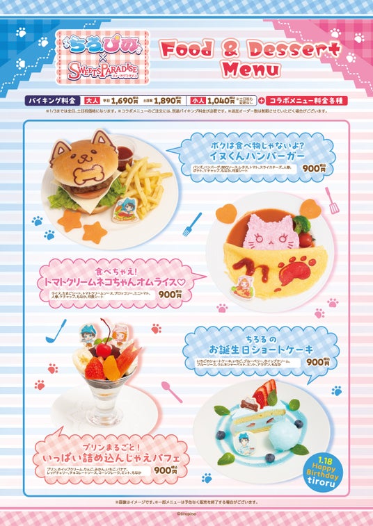 イベント期間中は対象のスイーツパラダイス店舗でオリジナルイラストのコラボグッズの他に、ちろぴのが考案したオリジナルメニューも発売!