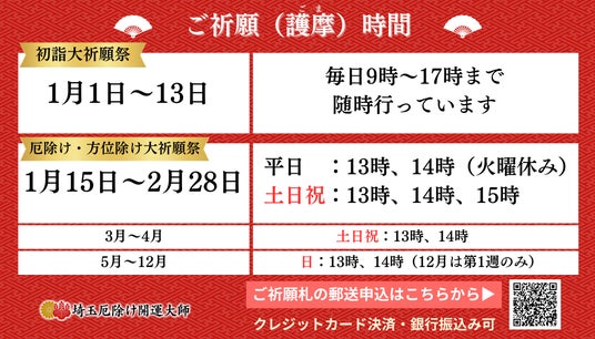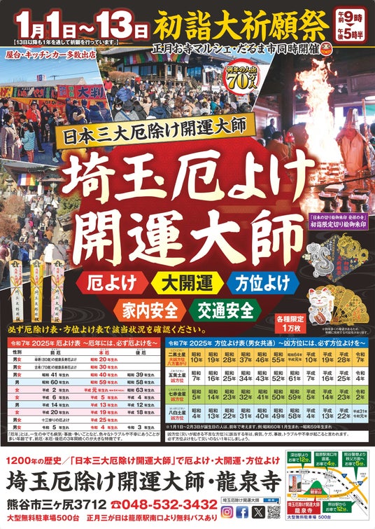 「日本三大厄除け開運大師」埼玉厄除け開運大師・龍泉寺にて令和7年1月1日より初詣大祈願祈祭を開催致します