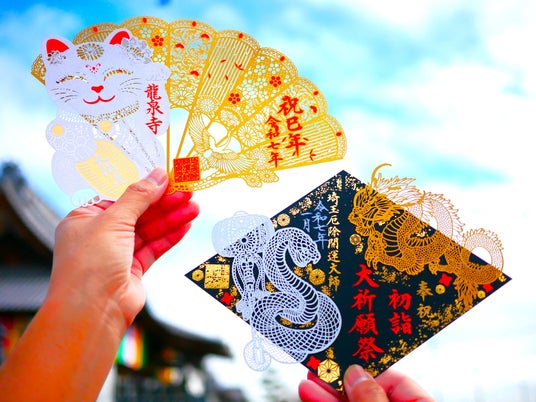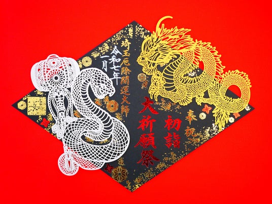 初詣限定切り絵御朱印「干支の蛇と龍」