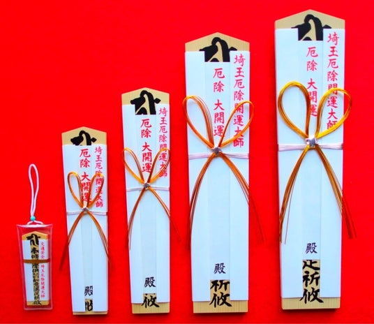 埼玉厄除け開運大師ではお札やお守りの郵送授与も行っております。お札は日本三大厄除け開運大師に数えられる当寺の僧侶が、1つ1つ丁寧に、あらかじめ護摩の炎にかざし祈願したものをお送りしております。そのためご来寺が難しくても、ご自宅で日本三大厄除け開運大師のご利益を受けることができるのでご安心ください。