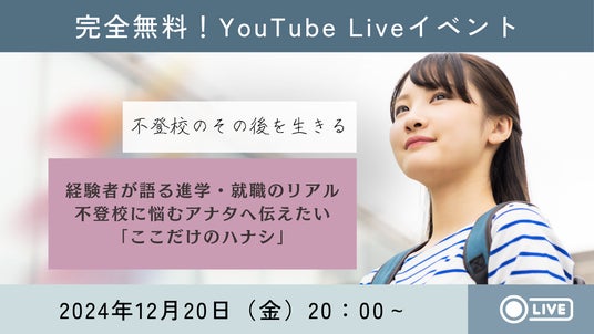 【不登校のその後を生きる】経験者が語る進学・就職のリアル~不登校に悩むアナタへ伝えたい「ここだけのハナシ」~無料オンラインイベント<12/20開催>