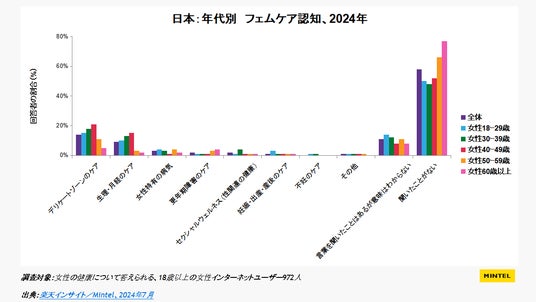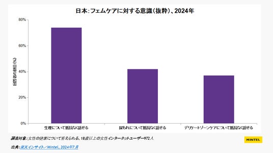 ロンドン本社を含め13か国にオフィスを構える市場調査会社「Mintel Group」の日本法人であり、美容やライフスタイル、食品・飲料分野におけるグローバル調査に強みを持つ、株式会社ミンテルジャパン(東京都千代田区)は、2024年10月に発刊したミンテルジャパンレポート「レディース衛生用品トレンド- 日本 - 2024年」の中で、世界のレディース衛生用品市場と日本における実態、発展が見込まれるフェムケア・フェムテックに関する認知について明らかにしました。