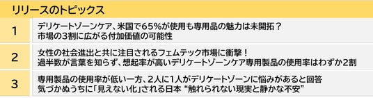 【レポート】世界でますます注目を浴びる「フェムケア」「フェムテック」産業 2人に1人が悩む“デリケートゾーン”は話題にするのもデリケートかも!?衛生用品先進国アメリカに学ぶデリケートゾーン最新トレンド