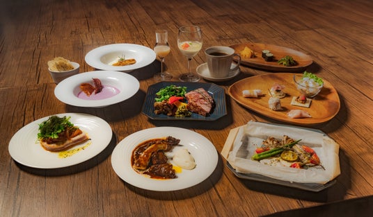 レストランは、海を望む絶好のロケーションに位置し、木のぬくもりと開放感があふれる心地よい空間が魅力です。12月からスタートしたプレミアムディナーコースでは、島の恵みをふんだんに取り入れ、一手間加えられた料理が並び、心と体が満たされる特別な余白時間をお楽しみいただけます。
