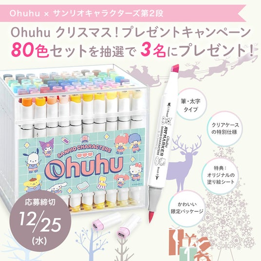 【SNSキャンペーン】Ohuhu×サンリオキャラクターズ限定セットが当たる!クリスマスキャンペーン開催中!