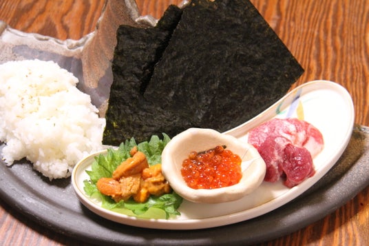 極上焼海苔を使った うにく手巻き寿司 時価海苔ソムリエの作る、熊本県有明産の極上焼海苔を使用した手巻き寿司です。その時期一番の雲丹といくら、さらには純国産の馬刺しを贅沢にお楽しみいただけます。