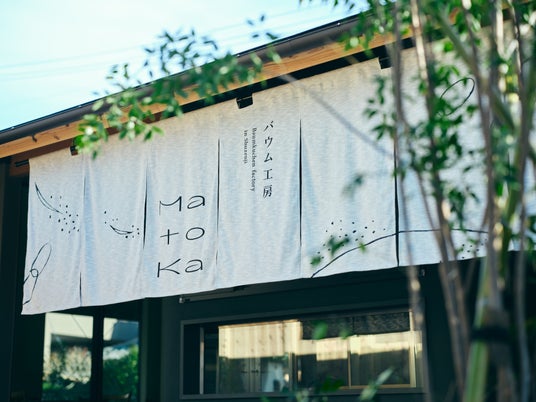 UDSでは「MatoKa」の開業に向けて、コンセプト立案からメニュー開発、ロゴやパッケージ、ウェブサイトのデザインまで一連の企画とデザインを手がけました。キーアイテムのバウムクーヘンはバスを待つ時間やほっと一息つきたいときのイートインはもちろん、テイクアウト、お土産、そして地域の方のおもたせにもご利用いただきやすいお菓子として商品開発を行いました。
