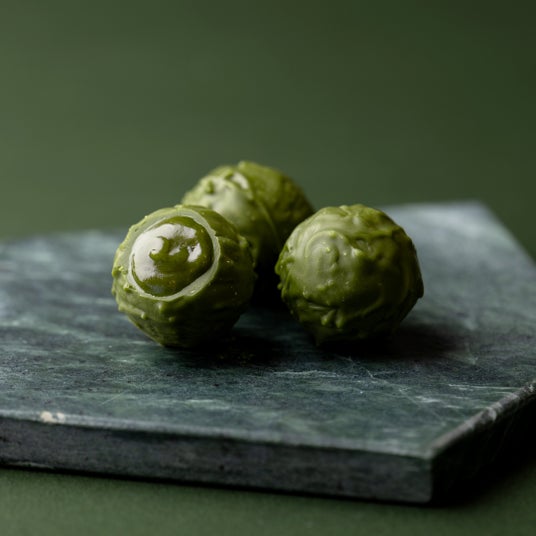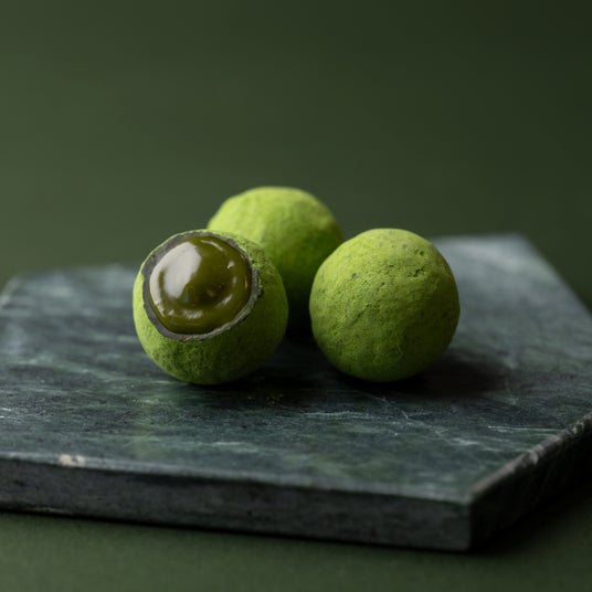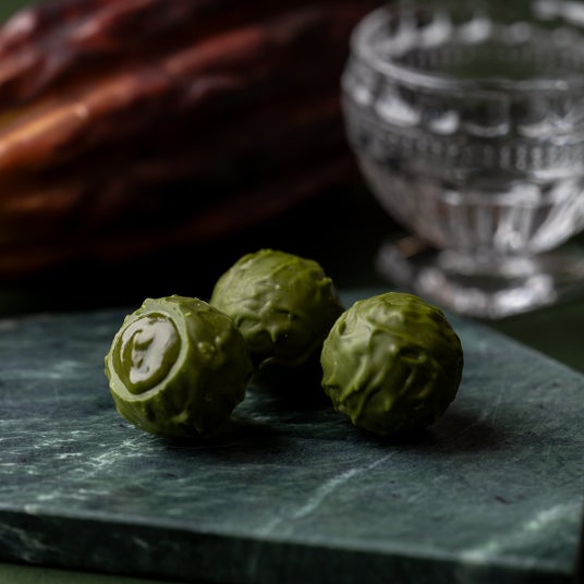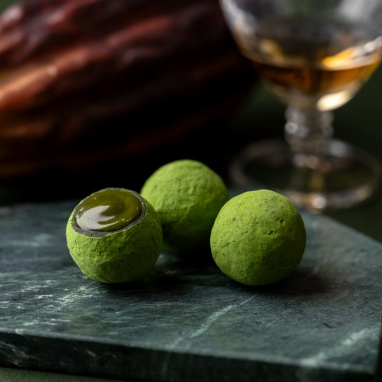 【抹茶×ラム】MATCHA×RUM贅沢に纏った抹茶のほろ苦さが、芳醇な香りとともに口の中で広がり、とろりとした食感のガナッシュが運ぶ、抹茶とラムの風味。