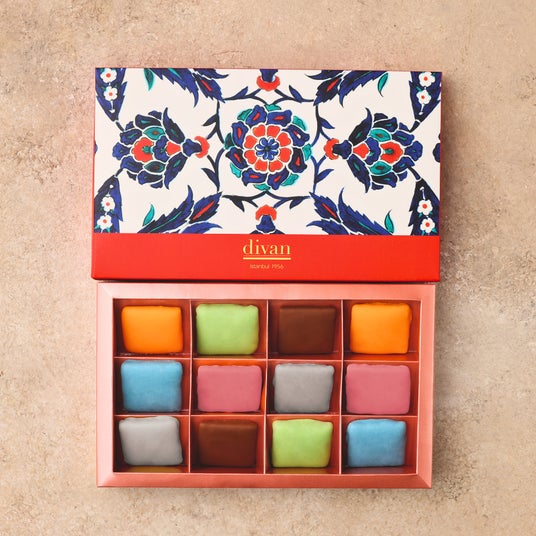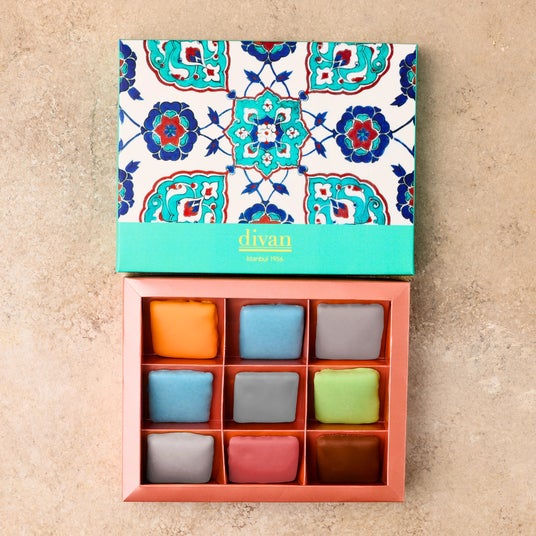 カラフルで美しいトルコタイルより着想をえた、ホワイトチョコレートとアーモンドのハーモニーが大好評のdivanの「アードワーズチョコレート」。