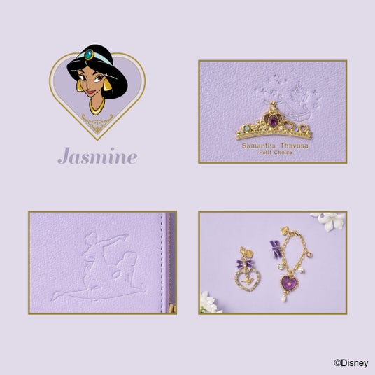 「ジャスミン」をイメージした紫のリボンや、魔法のランプがキラリと輝くチャーム。