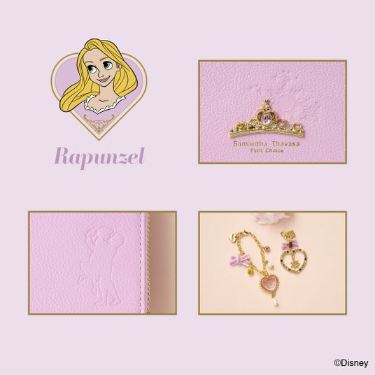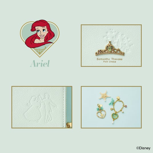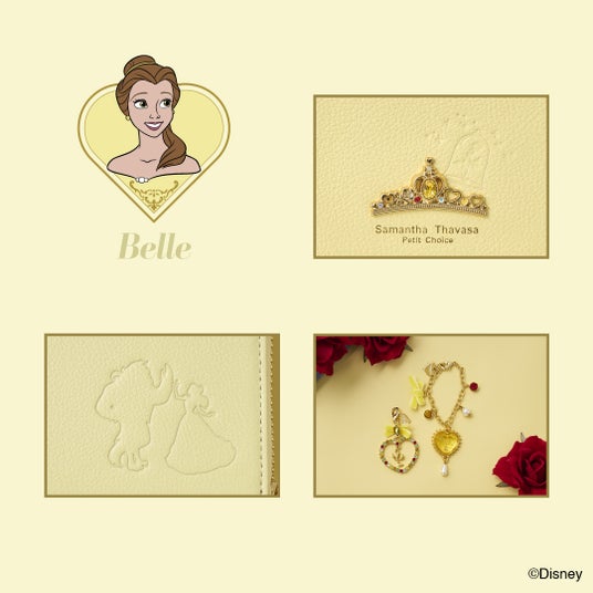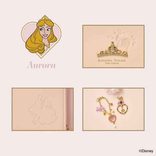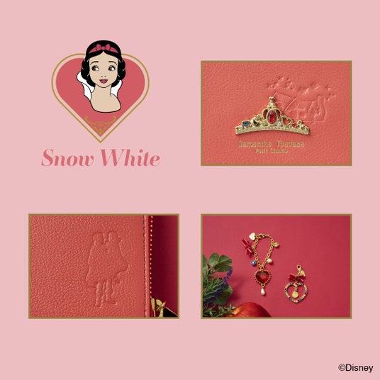 ティアラのモチーフにそれぞれのプリンセスをイメージした装飾が施されたアイテムは、物語を連想させる、世界観あふれる仕上がりに。型押しやモチーフなど、こだわりの詰まったデザインに注目のコレクションです。
