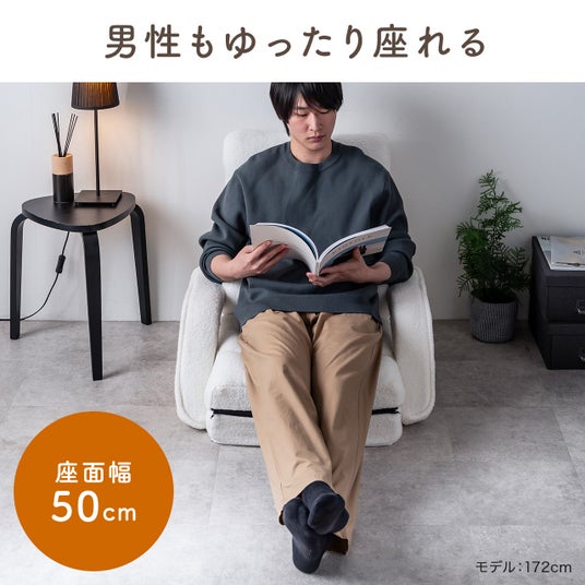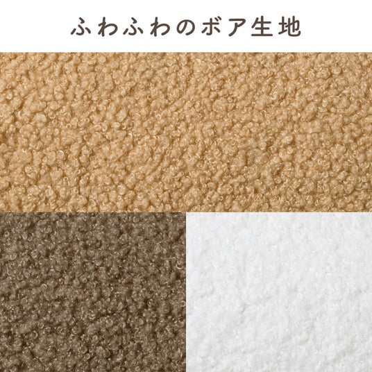 肌触りの良いボア生地を採用した座椅子は、長時間座っても快適そのもの。冬は暖かく、夏でもさらりとした心地よさを実現。厚みのあるウレタンフォームが体圧をしっかり分散し、腰や背中への負担を軽減します。付属のクッションを腰当てや枕として使えば、さらに快適度がアップします。