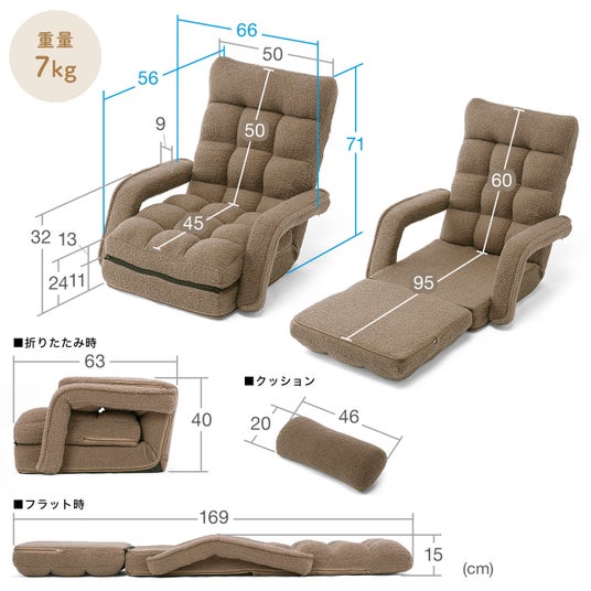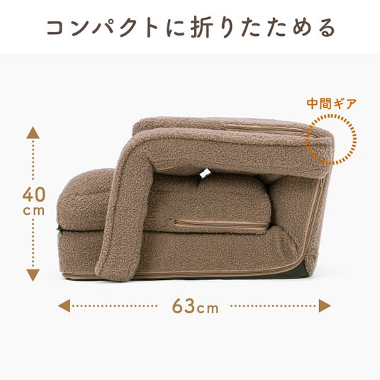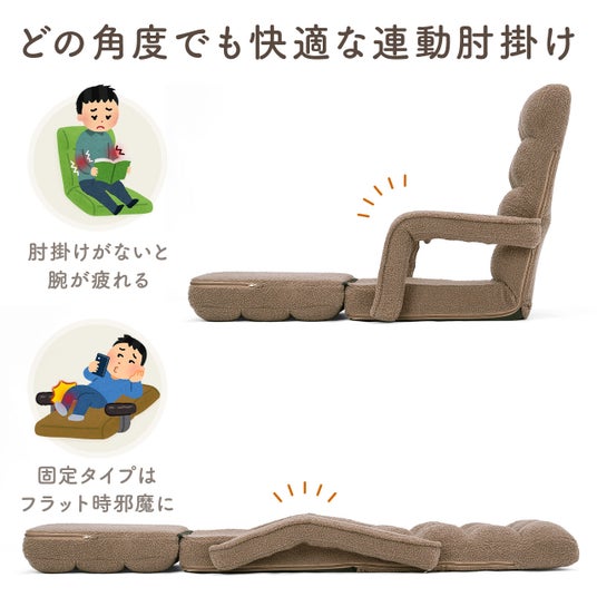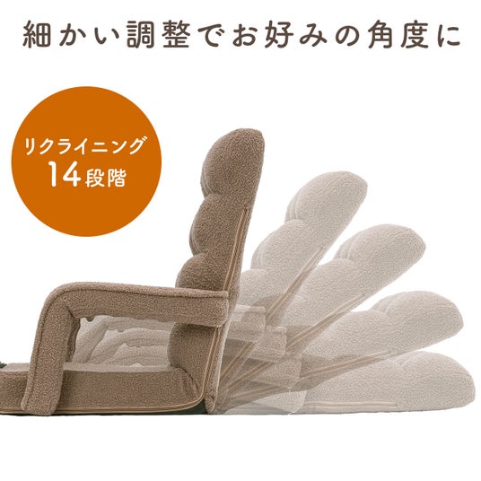座椅子 肘付き ソファベッド 14段階リクライニング ダブルクッション座面 日本メーカー製ギア ボア生地 ふわもこブラウン