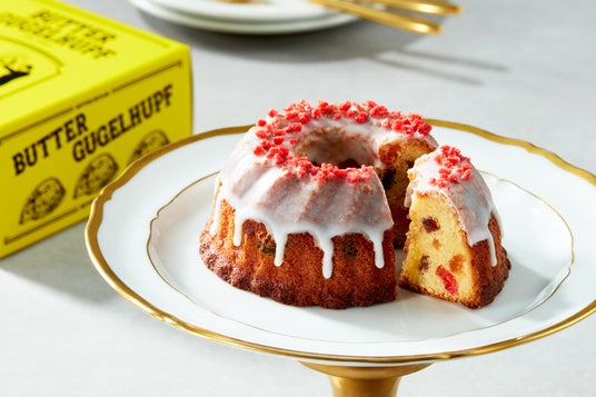 バターのコクをより一層引き立てるよう、生地にはラム酒に漬けたオレンジ・レーズン・チェリーなどのドライフルーツを混ぜ込み、さらにシナモンやナツメグなどのスパイスを加えて仕上げました。それぞれの味わいが重なり合う奥深さ、そして食感も楽しめる満足感の高いバタークグロフです。表面はグレーズで仕上げ、最後にフリーズドライのいちごをトッピングした、見た目も華やかな逸品でございます。